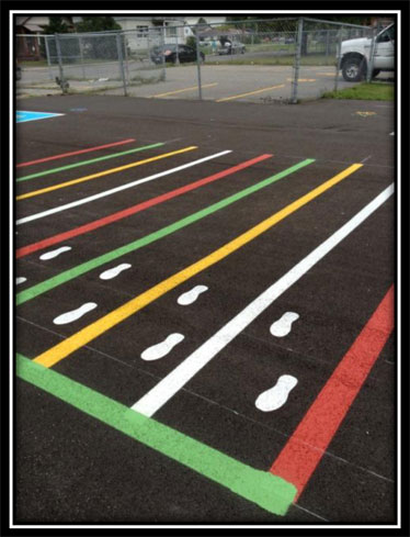 *Le défi de la marelle est de circuler parmi le tracé dans les 2 directions. Chacun des joueurs place son marqueur (caillou ou autre) dans la 1ière case. Le 1er joueur saute sur une jambe dans chacune des cases et place un pied dans chacun des 2 carrés parallèles. Une fois qu'il atteint la fin du tracé, le joueur se retourne et revient sur ses pas de la même facon jusqu'au dernier carré libre avant celui contenant son marqueur. Le joueur se tient sur une jambe, récupère son marqueur sans toucher la ligne ni aucun autre marqueur dans ce carré.